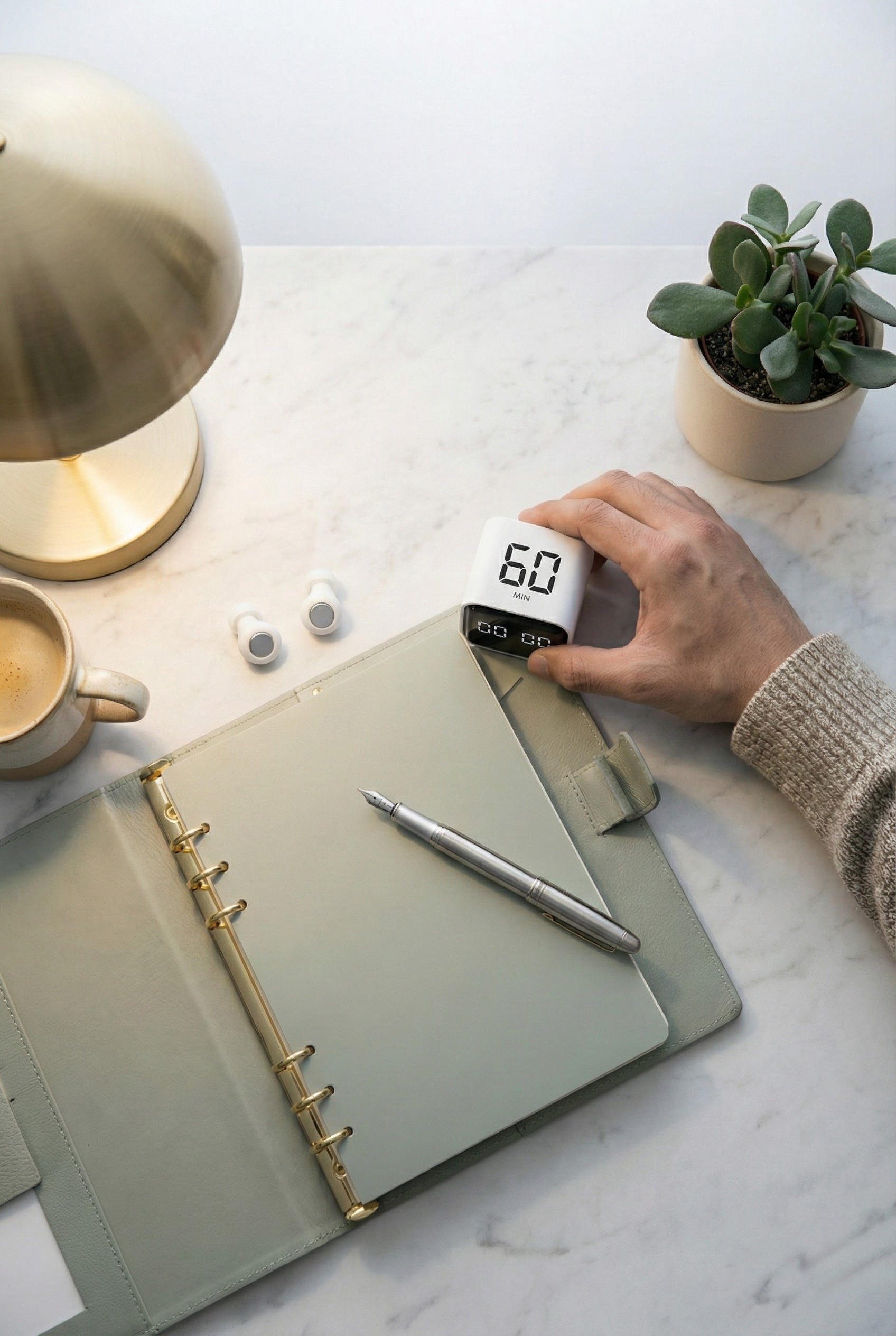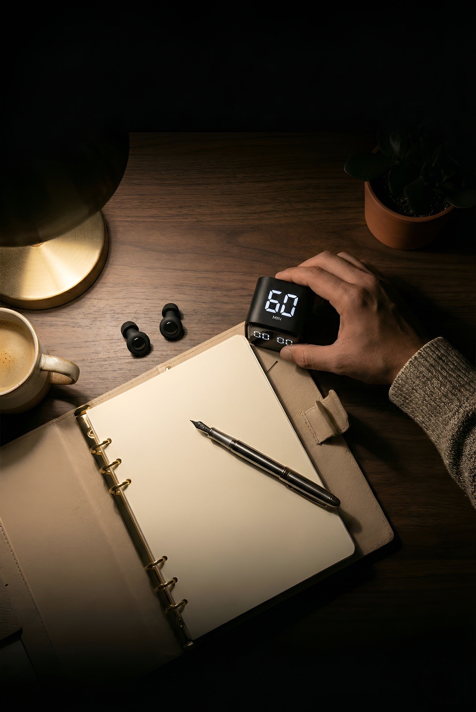 Turn the number up. The gyroscope detects gravity and starts instantly. This physical action signals your brain to focus.