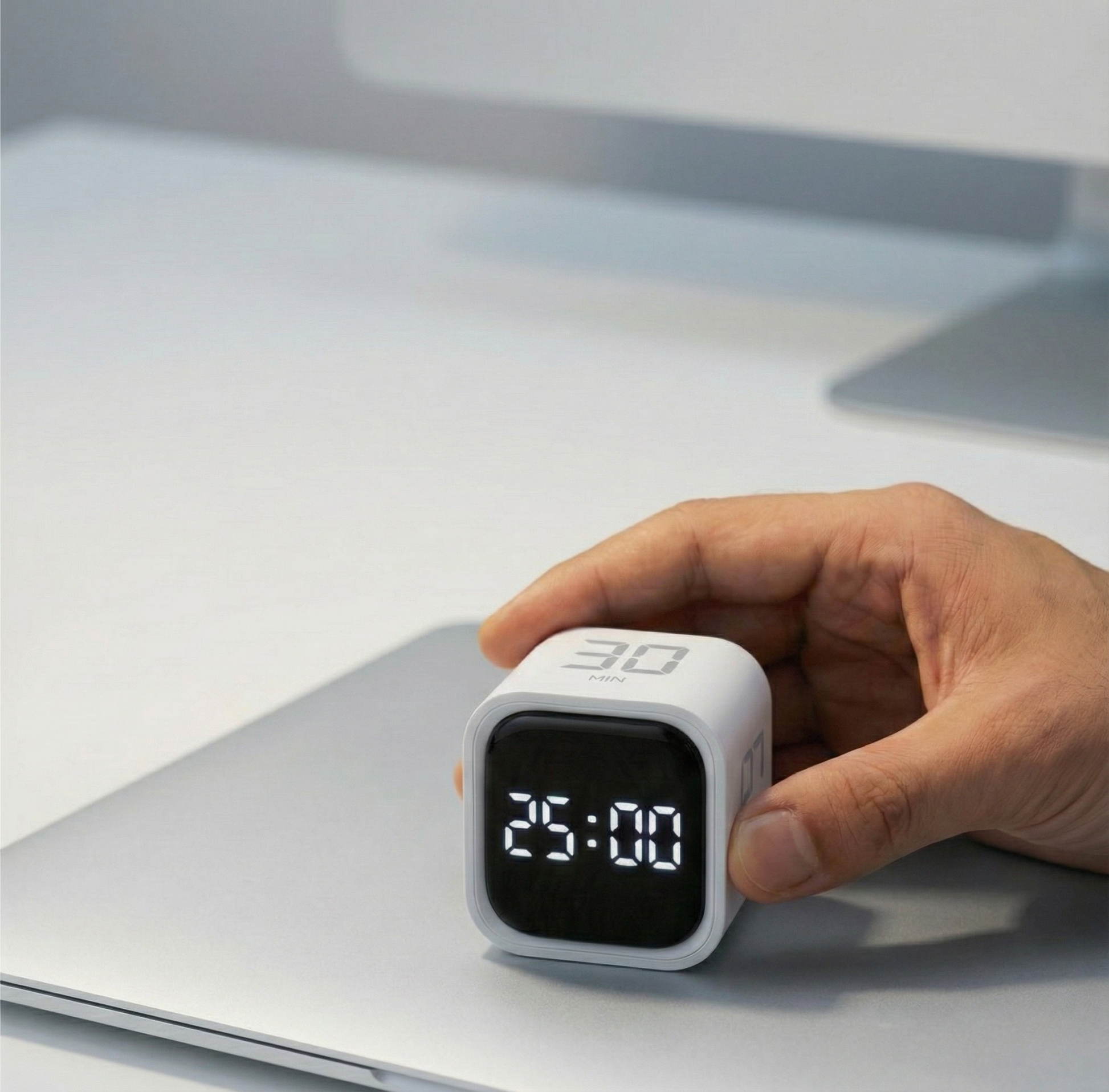Zero friction. No buttons. No apps. Simply choose your focus duration on the cube, flip it with that number facing the ceiling, and your focus session begins instantly. Flip to the blank side to end.